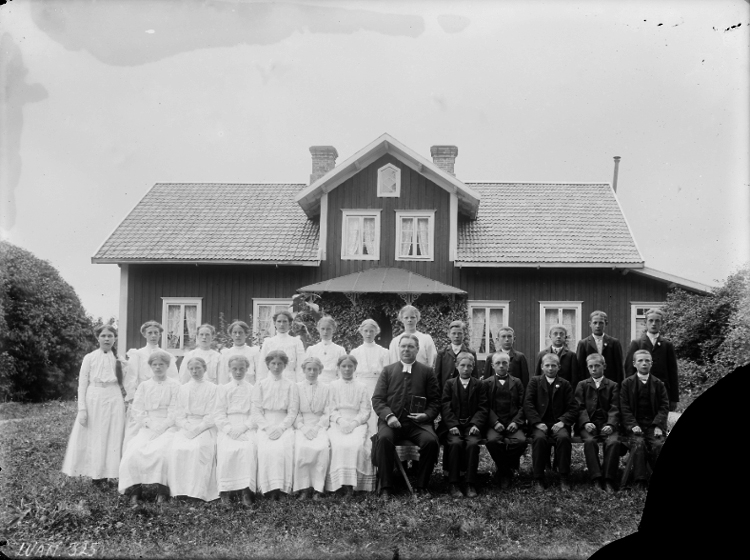 Präst i Södra Råda 1907-1933, sittande med konfirmandgrupp.