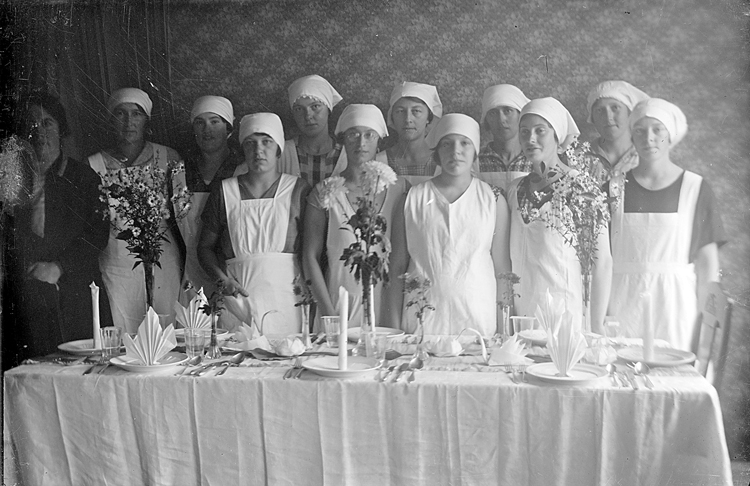 Fru Håkansson med elever från Hushållsskolan å Stridsborg i Kvänum.