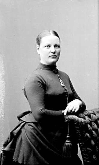 Titel: Maria Bäckström f. Lilja. Gift med Thure Bäckström. De hade barnen Karin, Greta, Elsa, Sigrid, Henrik och Erik. Thure Bäckström f. 1845 drev fotoateljé i Töreboda. Firman etablerades 1886. 1896 tog dottern Karin Bäckström över verksamheten och drev den fram till 1916.