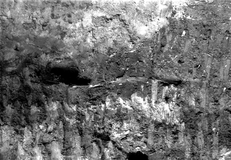 Grundgrävning för tillbyggnad. Detalj av norra schaktväggen.