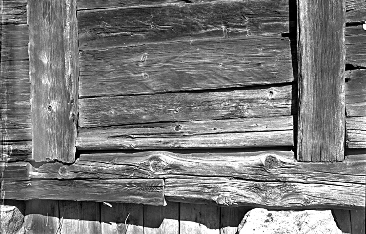Rackebyladugårdens loge. Detalj av södra långväggens utsida.