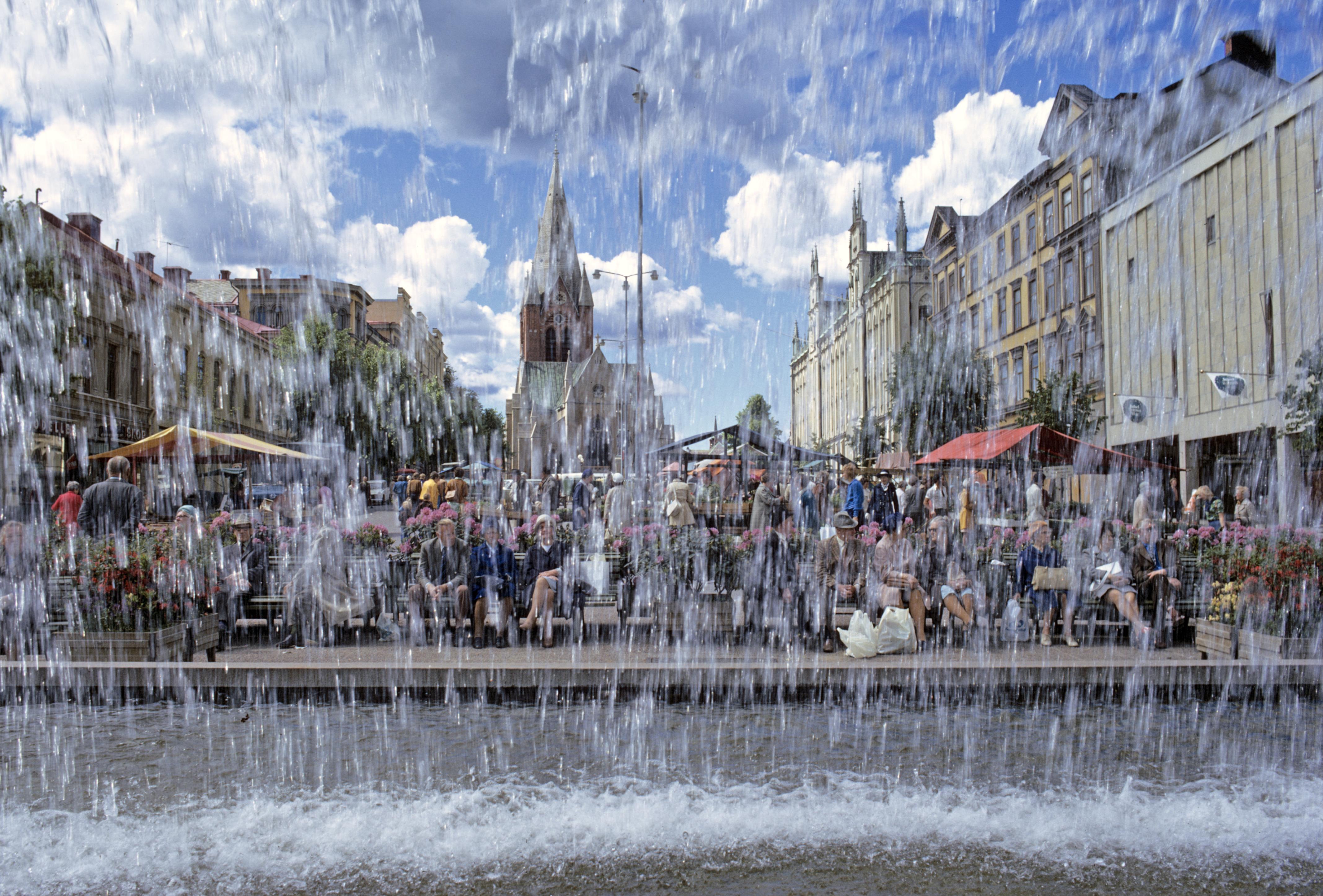 Stortorget, i bakgrunden Nikolaikyrkan. Bilden troligen från mitten av 1970-talet.