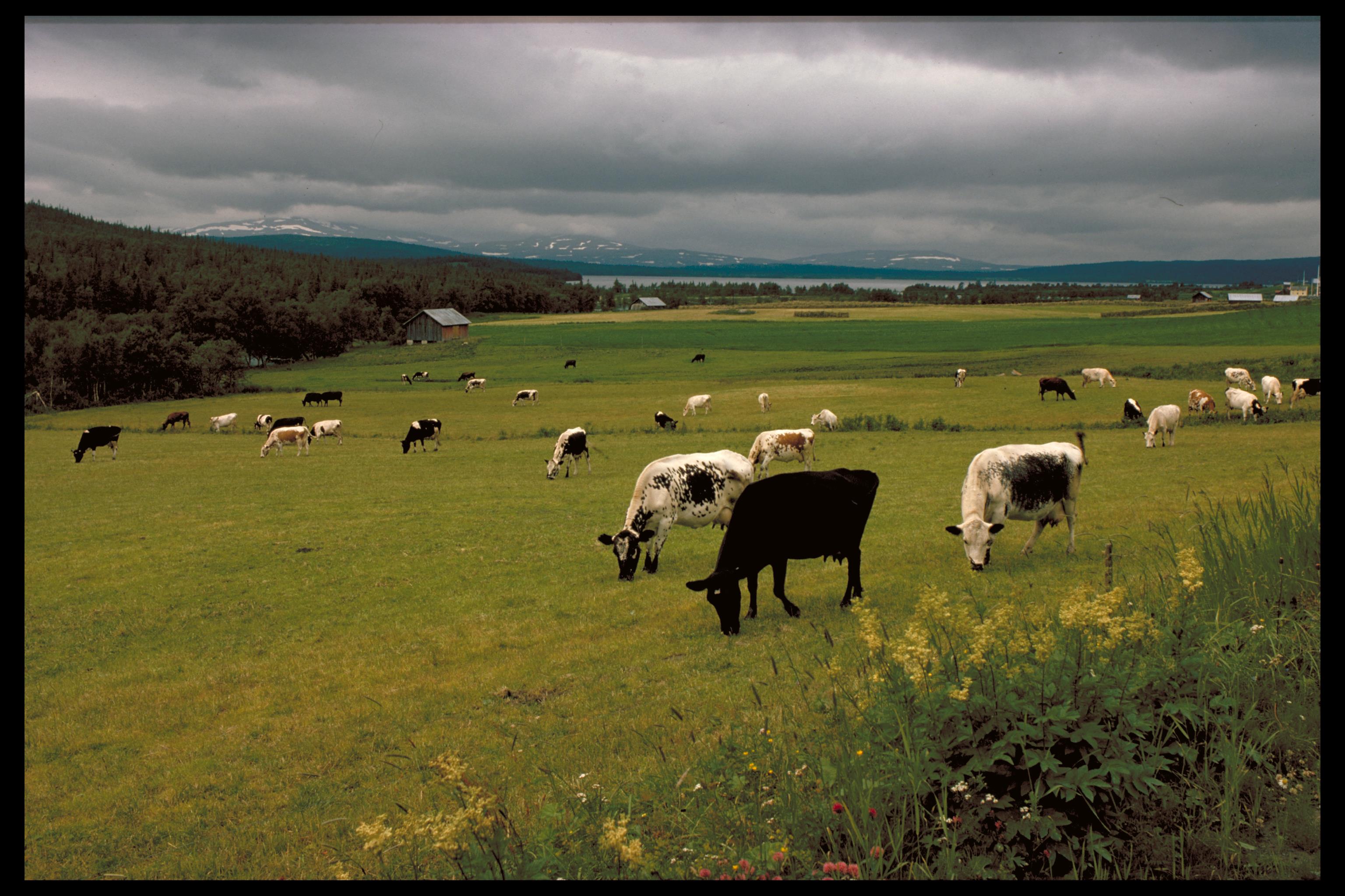 Kor på bete. Bilden troligen från mitten av 1970-talet.