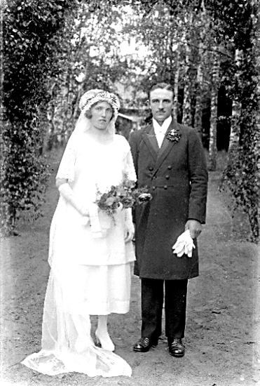Vigsel midsommar 1925 mellan Mårten Johansson, Stommen Götlunda , Tidan och Gunhild (Gulli) Karlsson , Herrgården Flistad Tidan.