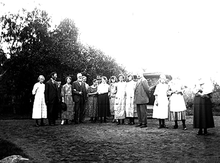 De båda ståtliga och skäggiga äldsta männen är från vänster August Andersson, Västtomten, Stenum, bror till Karl Magnus Andersson till höger.