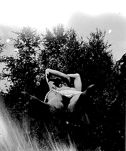 Självporträtt av Gunnar Andersson i gröngräset.
