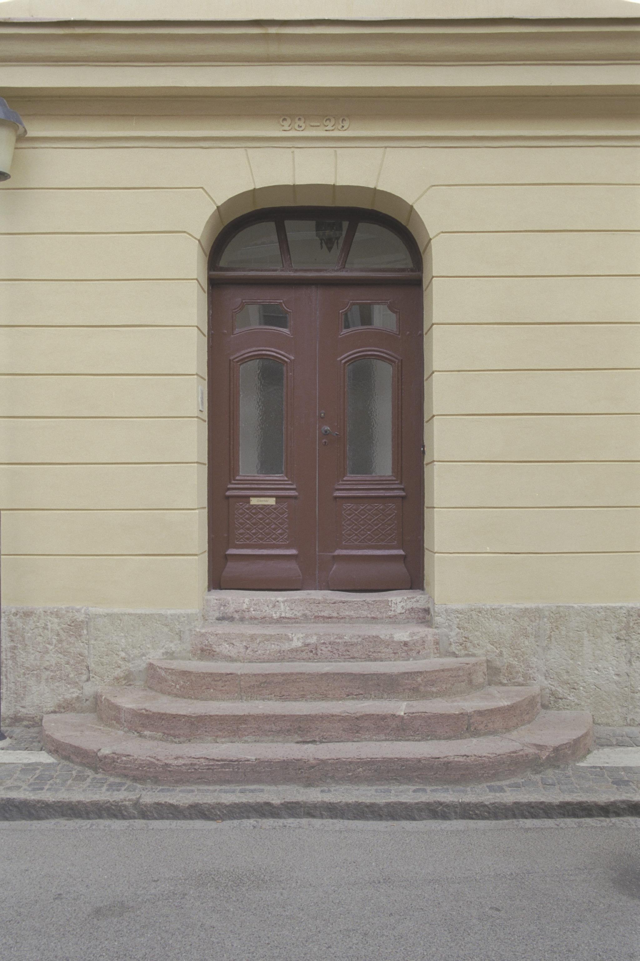 Stenhusets östra fasad, Västra Skolgatan. Entrépartiet.