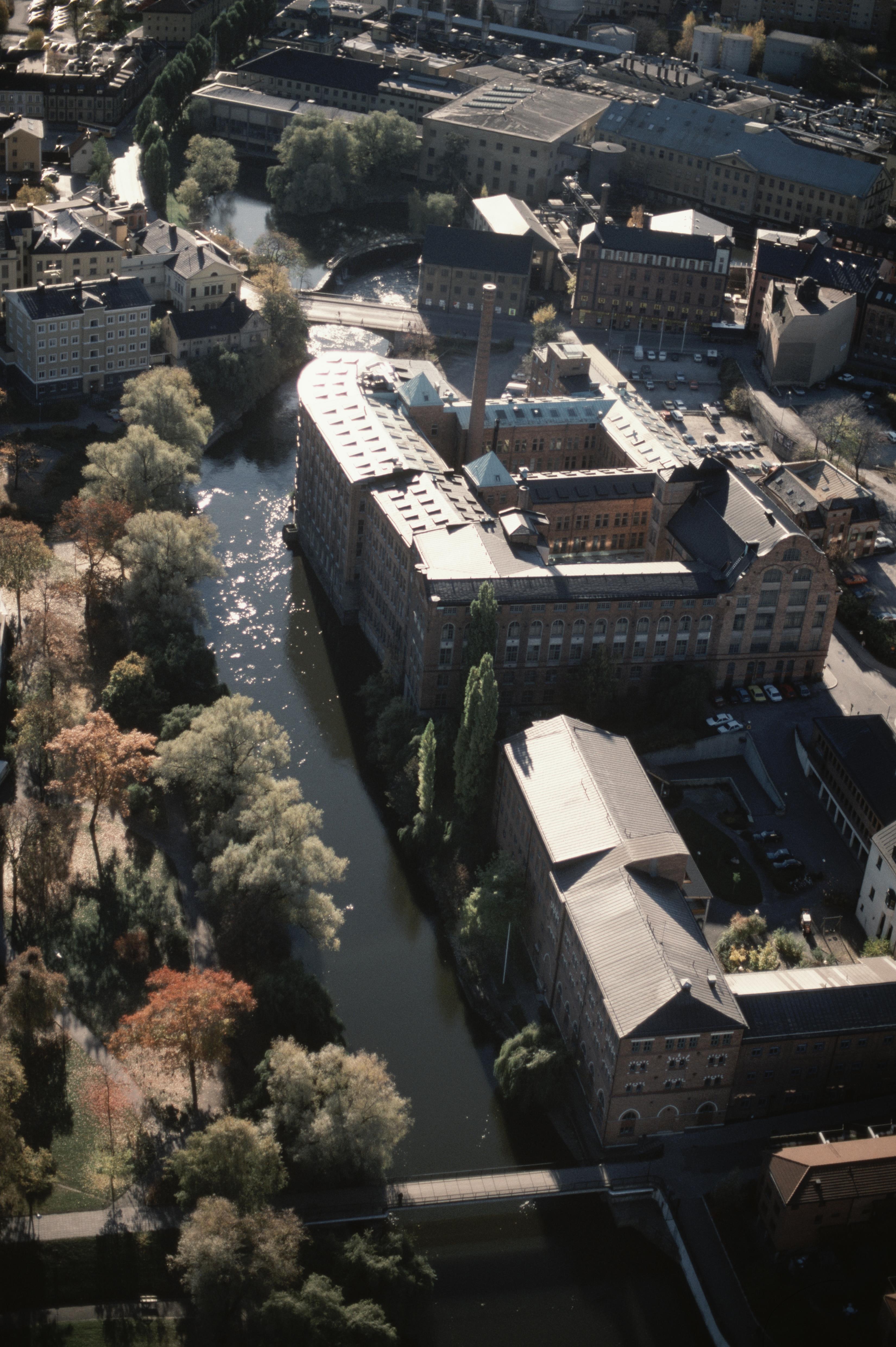 Ån Motala ström genom Norrköpings stad. Garvaregatan till höger. Bilden är tagen mot (väderstreck): S