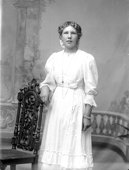 Ateljé. Dam i vitt.