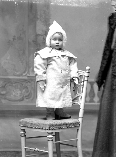 Barn stående på stol.