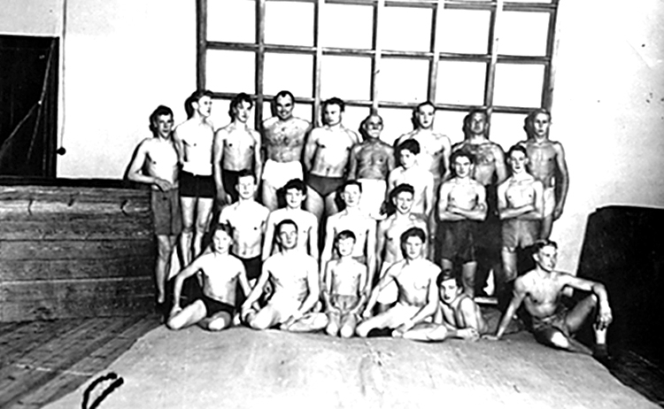 Skara. Frisksportarklubben Tor 1930-talet i Folkskolans gymnastiksal.