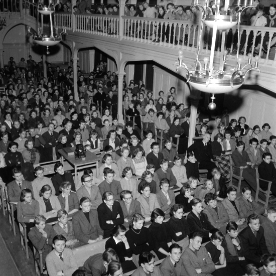 Vid främre pelaren rektor Holmstedt.