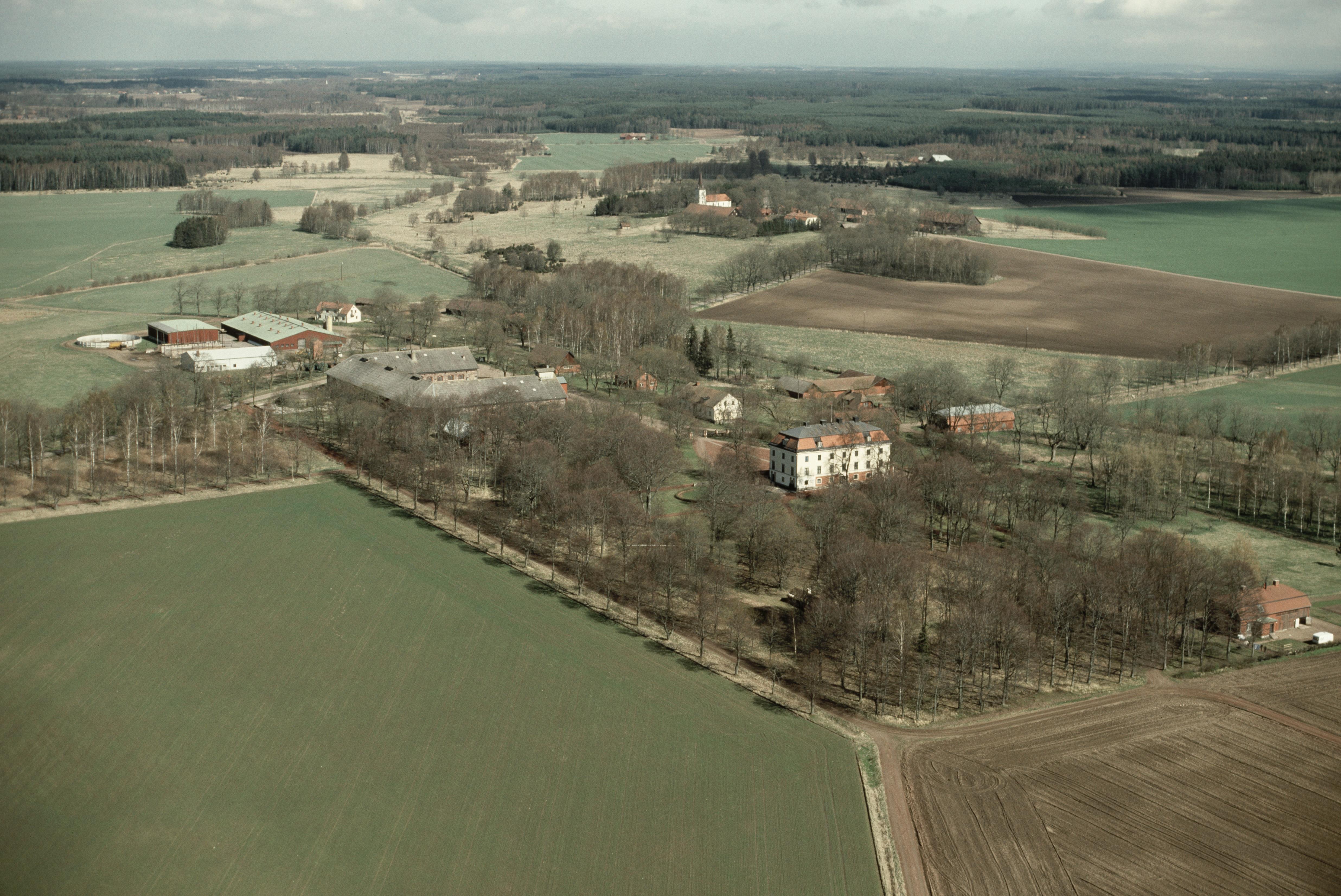 Kavlås slott / säteri. I bildens övre del Hömbs kyrka. Bilden är tagen mot (väderstreck): NO