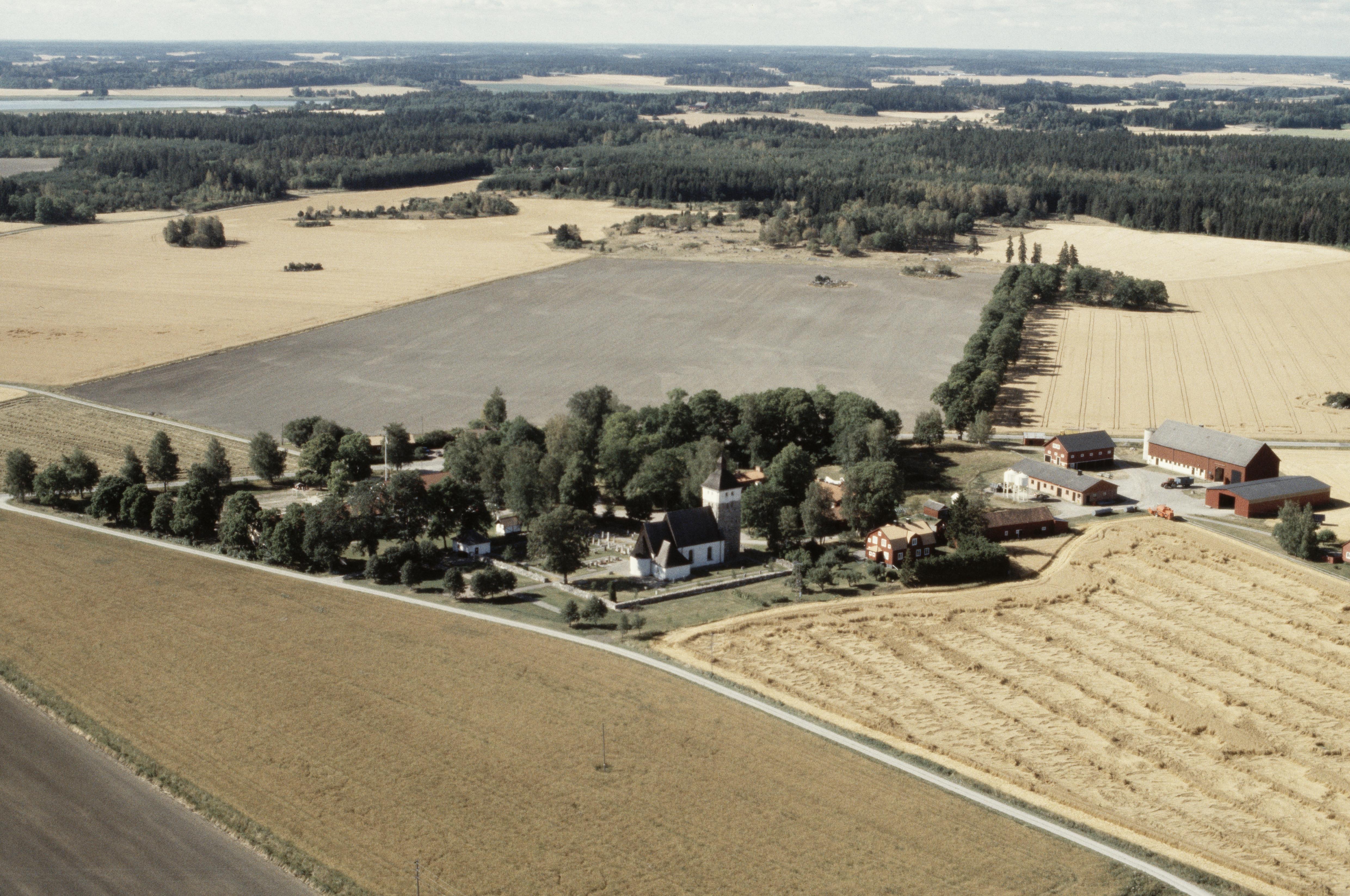 Balingsta kyrka och kyrkby. Bilden är tagen mot (väderstreck): SSV