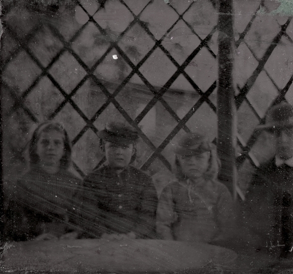 Nils Edvards barn Emma, Hildur, Tekla och Bror i Brogårdens trädgård.