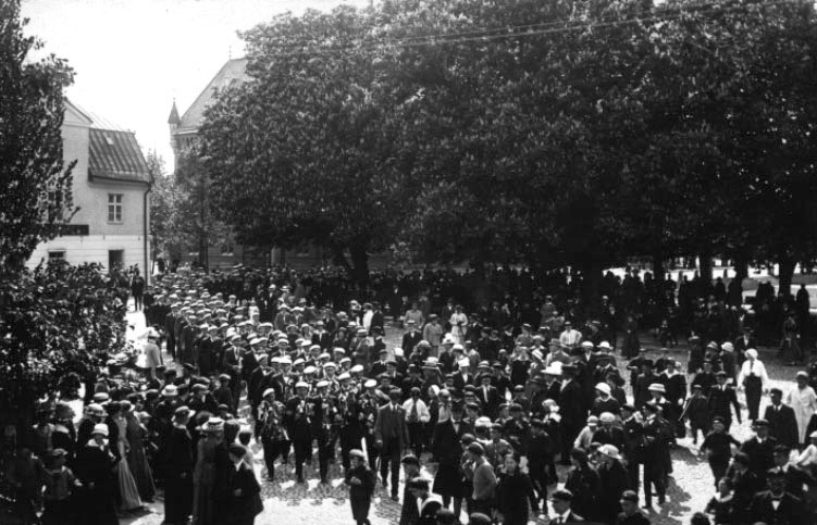 Skoltorget. Studentexamen den 2 Juni 1916.