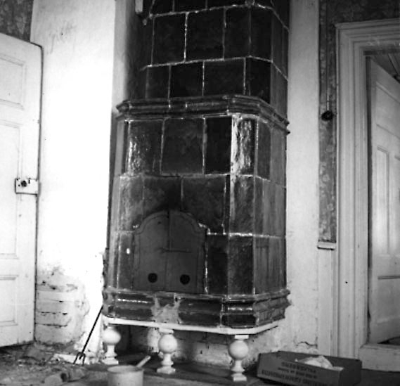 Skara, kv. Herrgården, Kråks herrgård. Östra flygeln. Kakelugn från Hallby, Storegården, Vänersnäs.