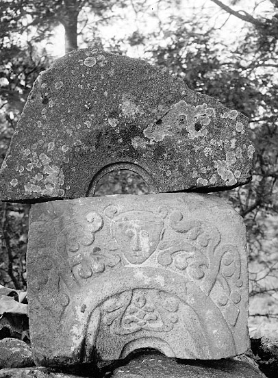 Resterna av de romanska fönstren ligger ute i stenmuren.