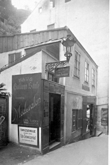 Huset, som anses som ett av de äldsta i staden, var ursprungligen i 4 våningar. De översta båda våningarna nedbrunno i april 1929, varefter huset i sin helhet revs i oktober samma år. Huset var beläget i närheten av Hotel Pupp. Det kallades "Goldene Sänle".