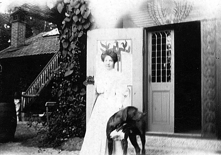 Agnes de Frumerie och hunden Caro. Villa Borgen, år 1901-1919.