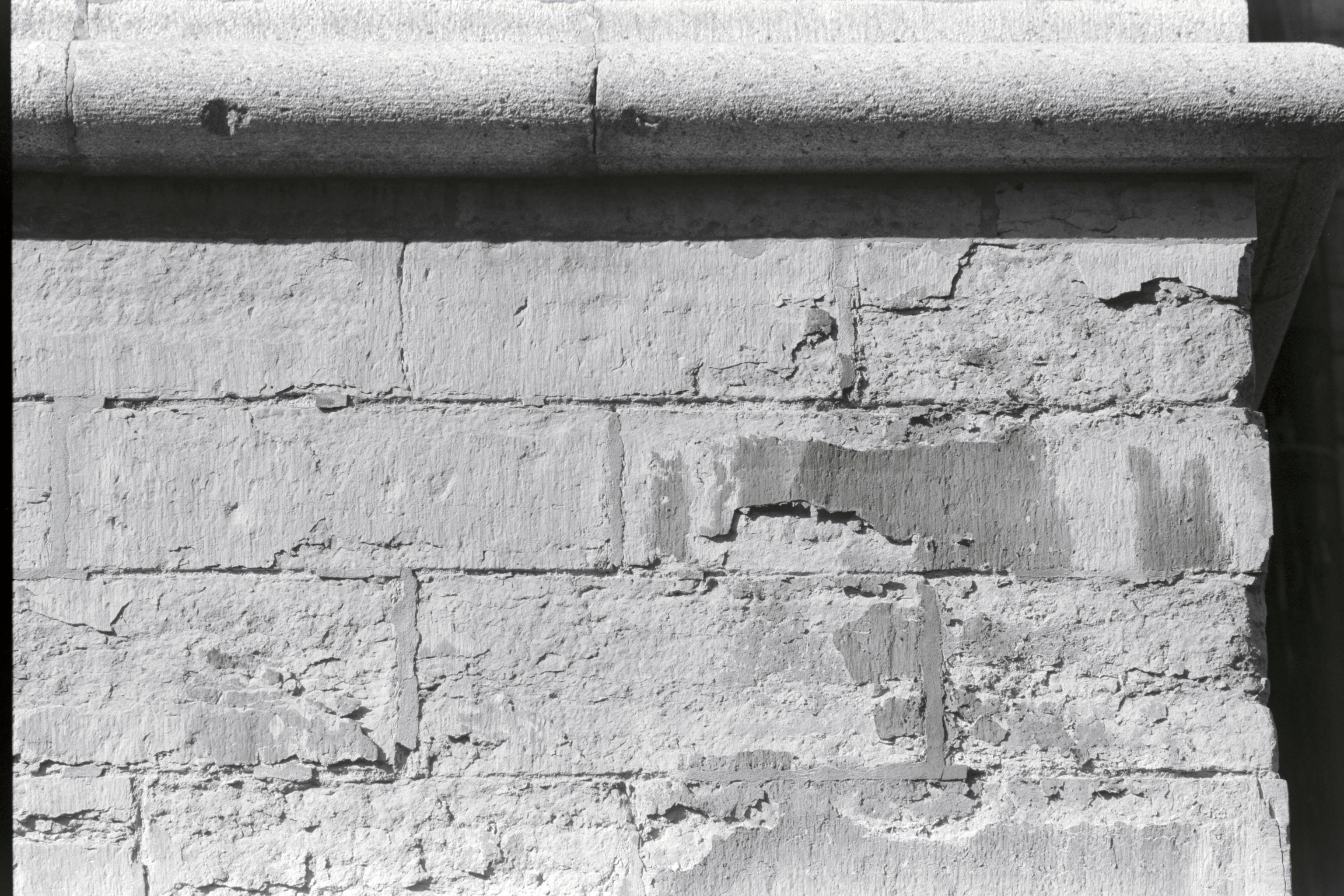 Södra fasaden, koret ?, strävpelare. Kvaderstenar.