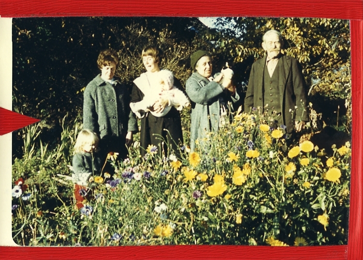 Mona-Charles med frön, Elsa Eriksson, Erik Gustavsson samt okänd.