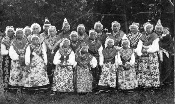 Estland, Runö, kvinnogrupp. Foto: 1913