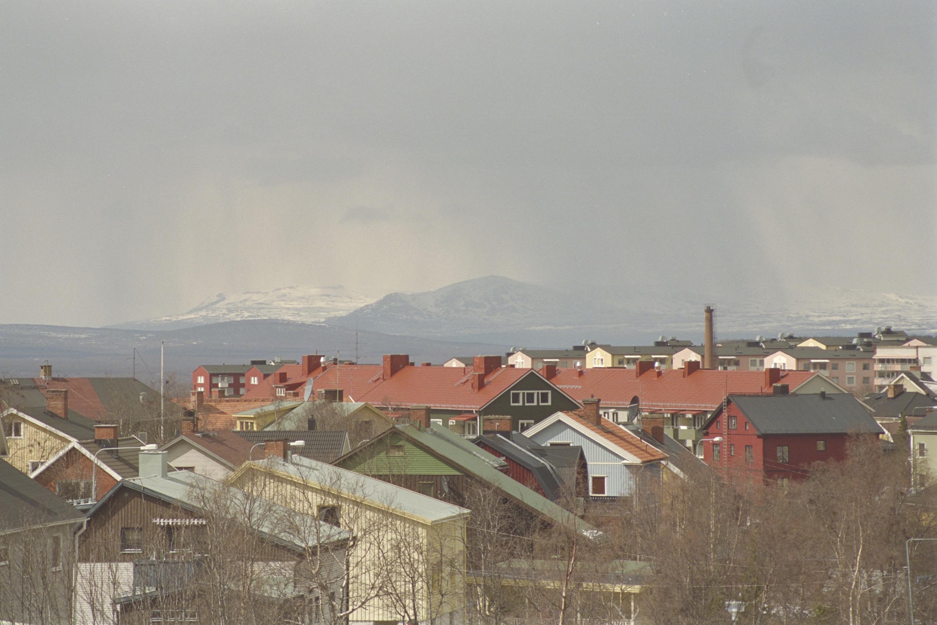 Vy över Kiruna mot sydväst från Högalidsskolan.