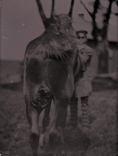 Sjuk häst med böld, dokumenterad av N E Forssell, Skara.