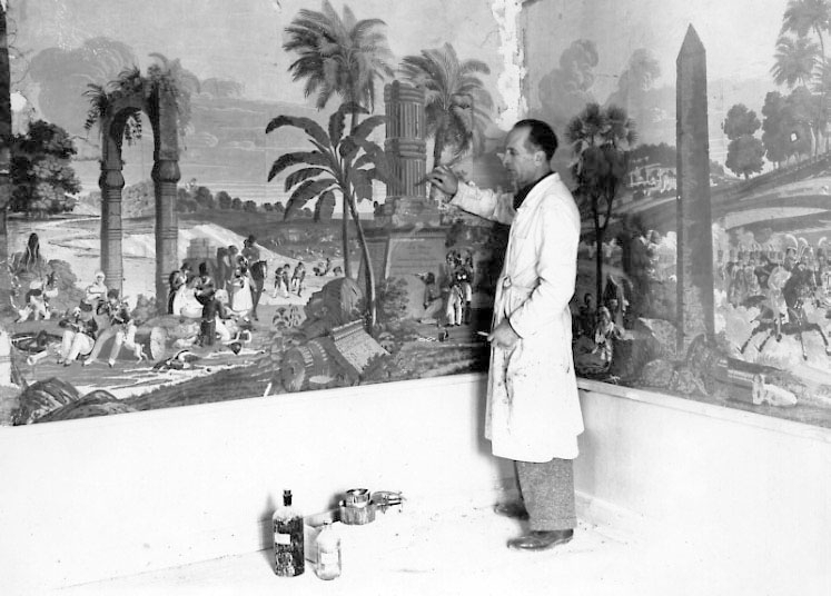 Skara, kv. Herrgården, Kråks herrgård. Förmaket med tapeten från Höjentorp, konservator O. Hellström.