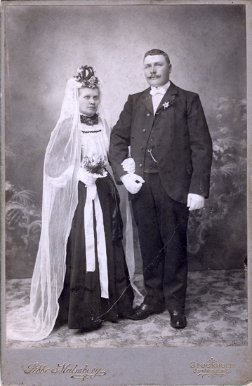 Brudparet Sven Lager och Elvira Didon, Stockholm. Vigda den 8 november 1904.