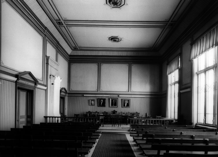 Åse, Viste, Barne o Laske härads tingshus i Vara. Tingssalens västra del. Salen K-märkt.