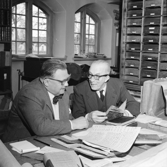 Landsantikvarie Ullenius och ryttmästare Bertil Ekberg, 29/3 1963.