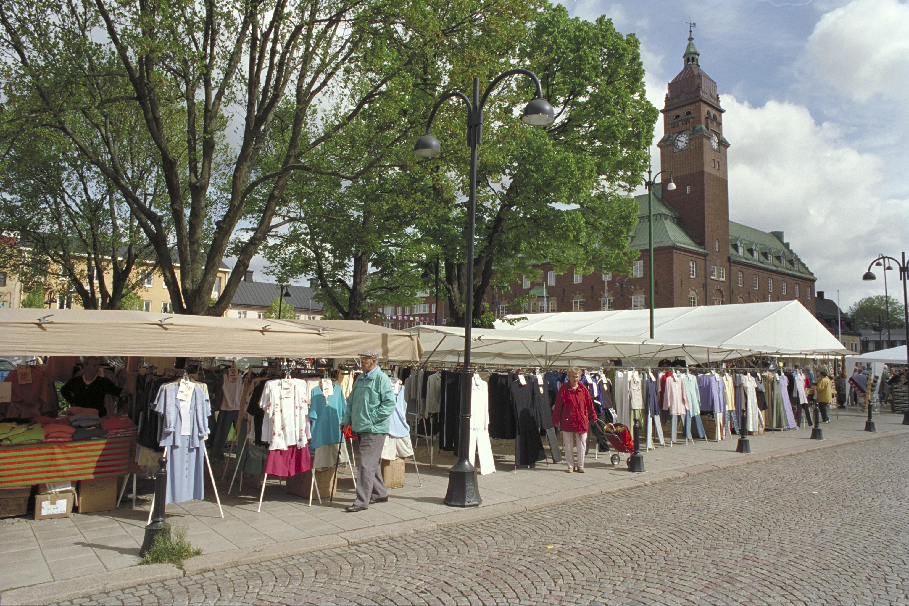 Stortorget, torghandel med stadshuset i bakgrunden.