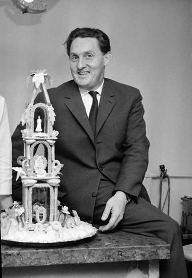 Konditor Harry "Nocke" Svantesson med leveransklar krokan, 1962.