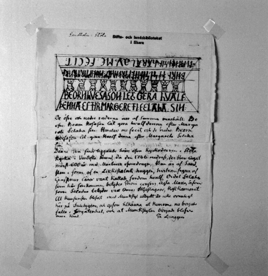 Titel: Skara. Biblioteket. Repro av sida ur Sundholms handskrift om Slöta sn. Repro:1964.
