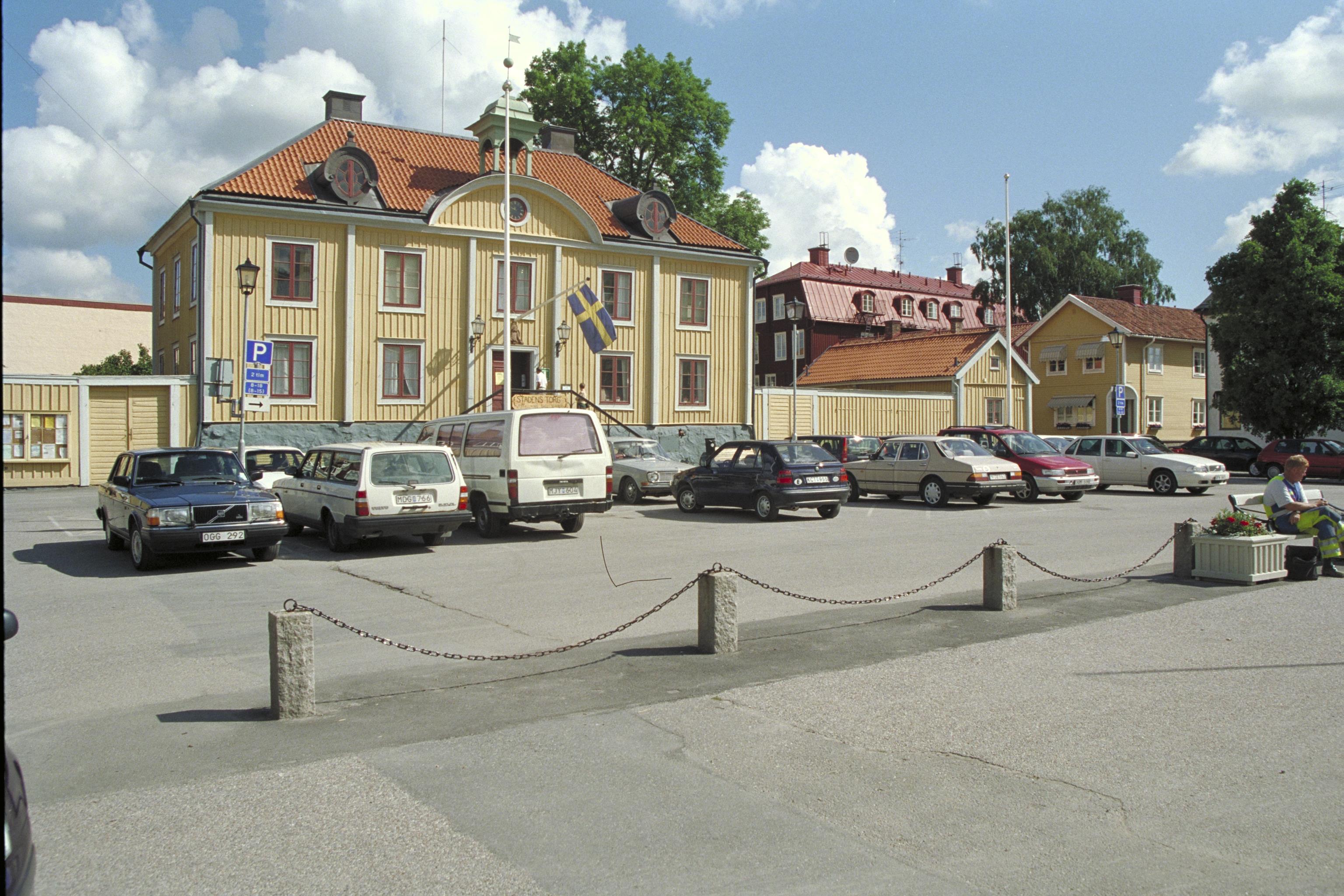 Torget i Mariefred med Rådhuset i bakgrunden.