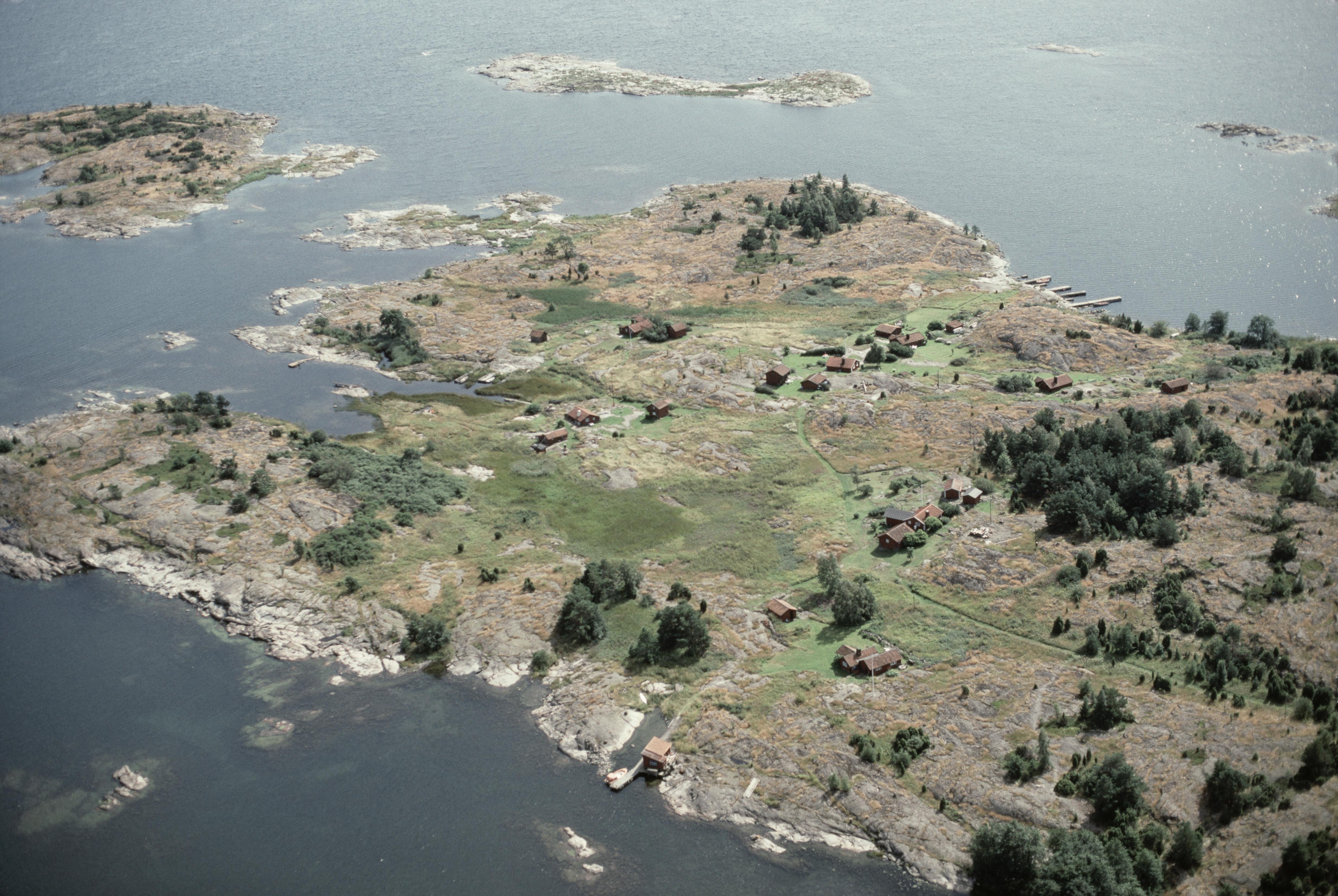 Björkskärs fiskeläge i ytterskärgård, området Lacka i Gupafjärden. Bilden är tagen mot (väderstreck): SO