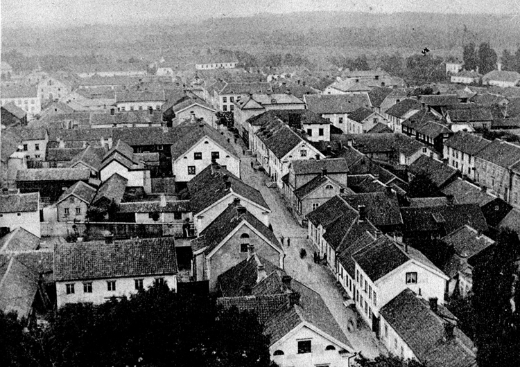 VY ÖVER MARIESTAD FRÅN KYRKTORNET FÖRE BRANDEN.