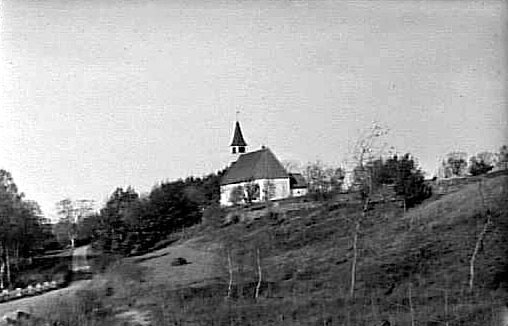 EXTERIÖR AV EN KYRKA SOM SYNS PÅ AVSTÅND. 1937.