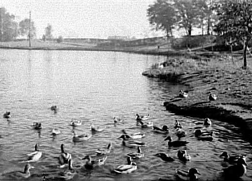 VIKTORIASJÖN MED ÄNDER VID STRANDKANTEN.