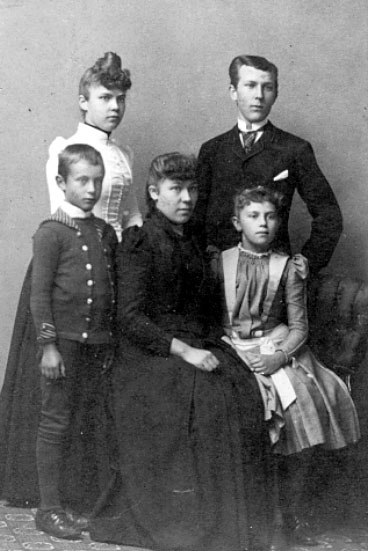 "Den förste frisören Herrmann", frisör och fältskär, med familj. Han föddes i Tyskland, kom till Lidköping i början på 1860-talet. Startade sin frisörfirma som drevs o fanns i familjens ägo närmare hundra år. De sista trettio åren drevs firman av andra och upphörde ca 1990.