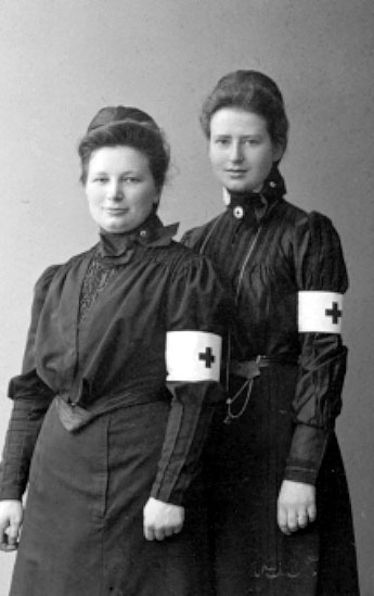 Fröknarna Leijon Solberga Korsberga i sjuksköterskedräkter.