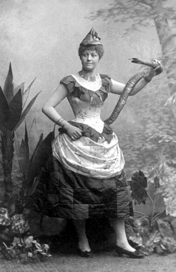 Fröken Anna H. Ch. Pettersson Norrie som Ormtjuserskan "Irma" på Stora teatern.