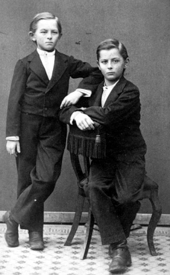 Tvillingarna Ernst Wilh. och Arvid Emil Sandsjö, Hjo. Sittande skjutit sig.
