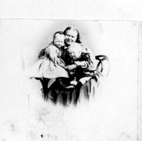Fru Amanda Palm född Detleffs-Gerlack med sina barn Henrici och Carl Herman.