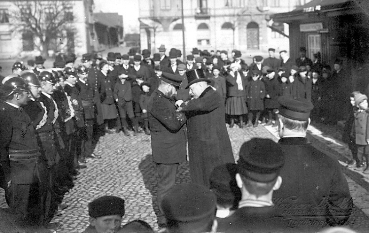 Lidköping. Brandkårsparad. A Hjortén tilldelas guldmedalj.