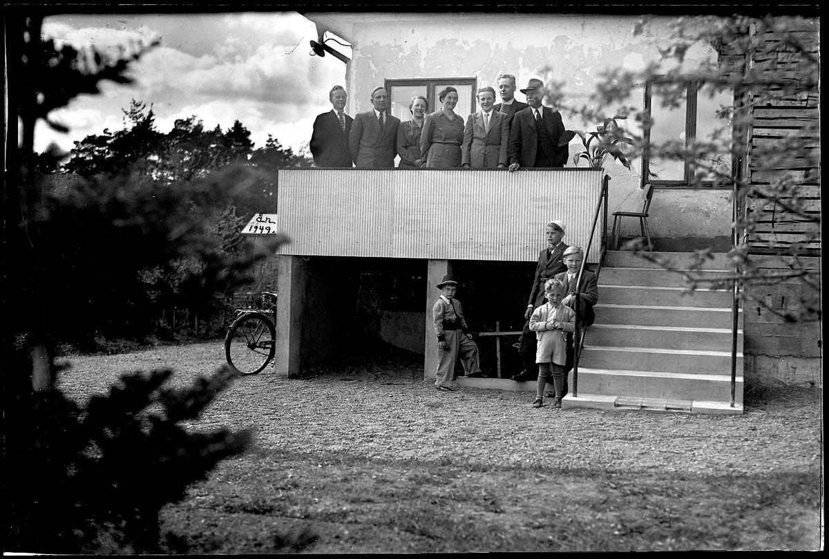 Familj på terass