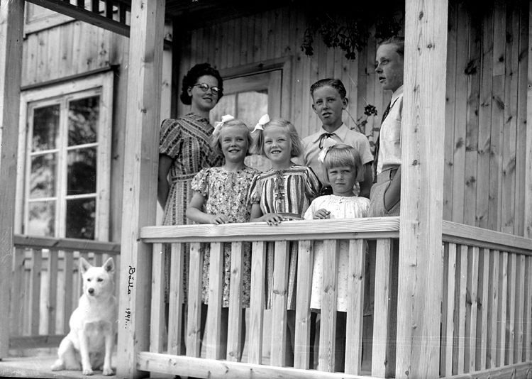 Lars Larssons barn och hunden Bälla, Labacka, Rudskoga.