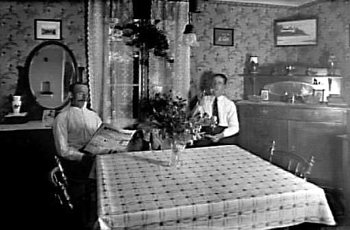 TVÅ MÄN I ETT RUM. EN MAN LÄSER TIDNINGEN, DEN ANDRA RÖKER